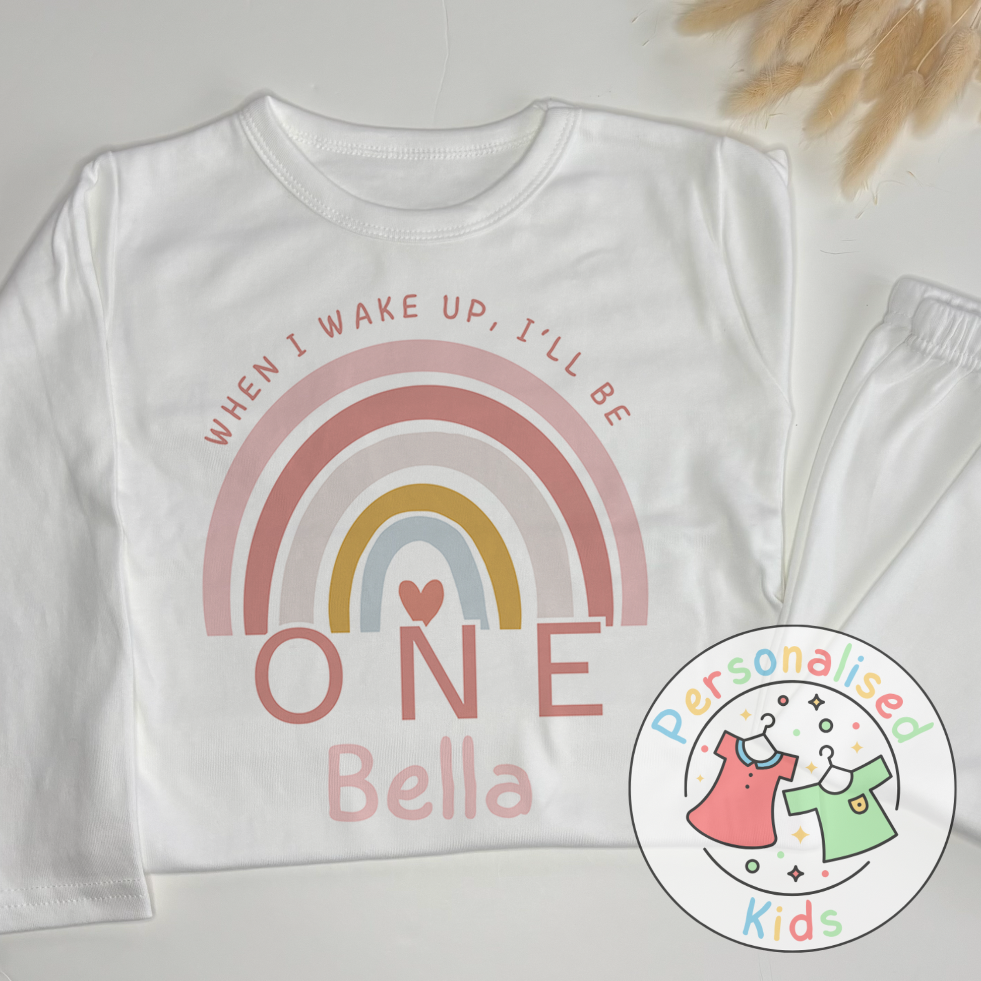 π Personalised Pink Rainbow βWhen I Wake Up, I Will Beβ Birthday Pyjamas β RB001 π