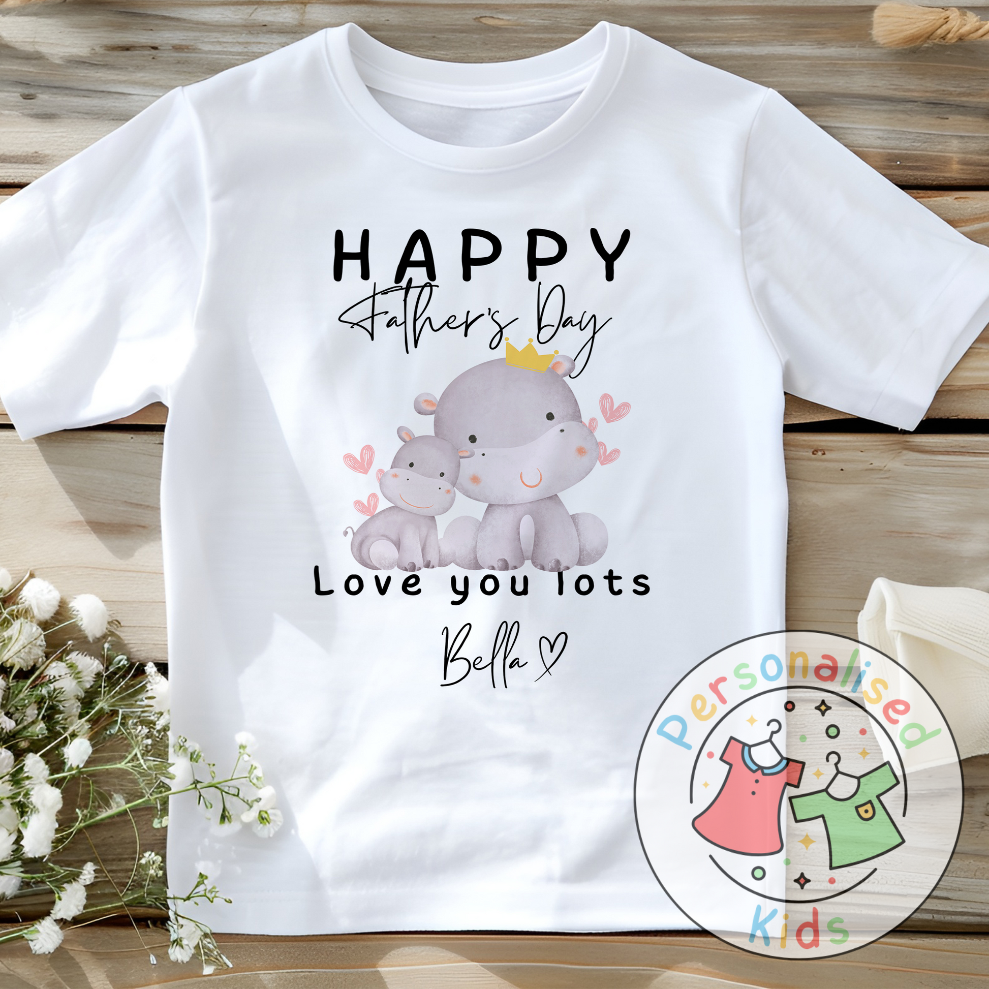 Personalised Father’s Day Top – Hippo “Happy Father’s Day” Design