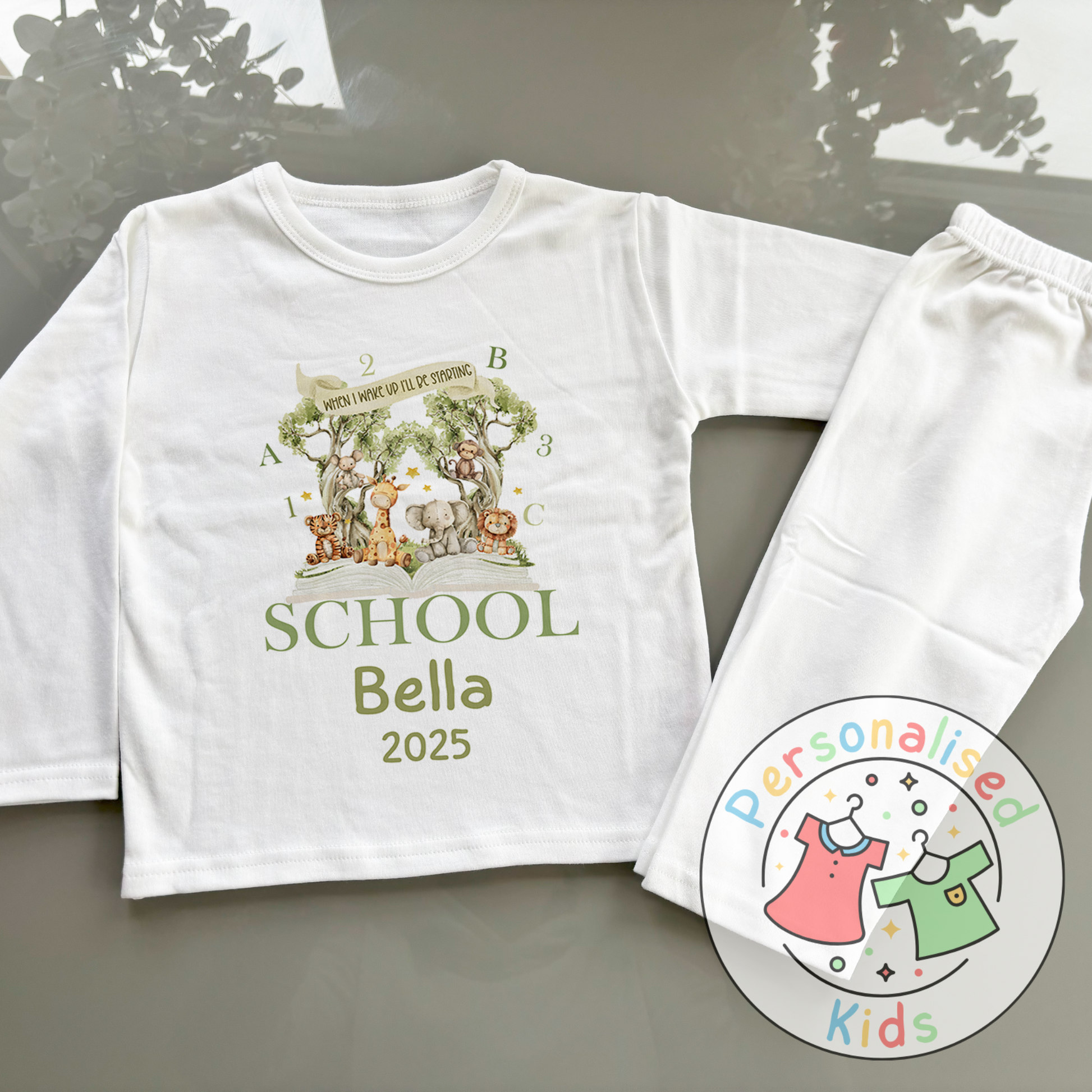 Personalised “When I Wake Up I Will Be Starting” Pyjamas – Safari & School Theme