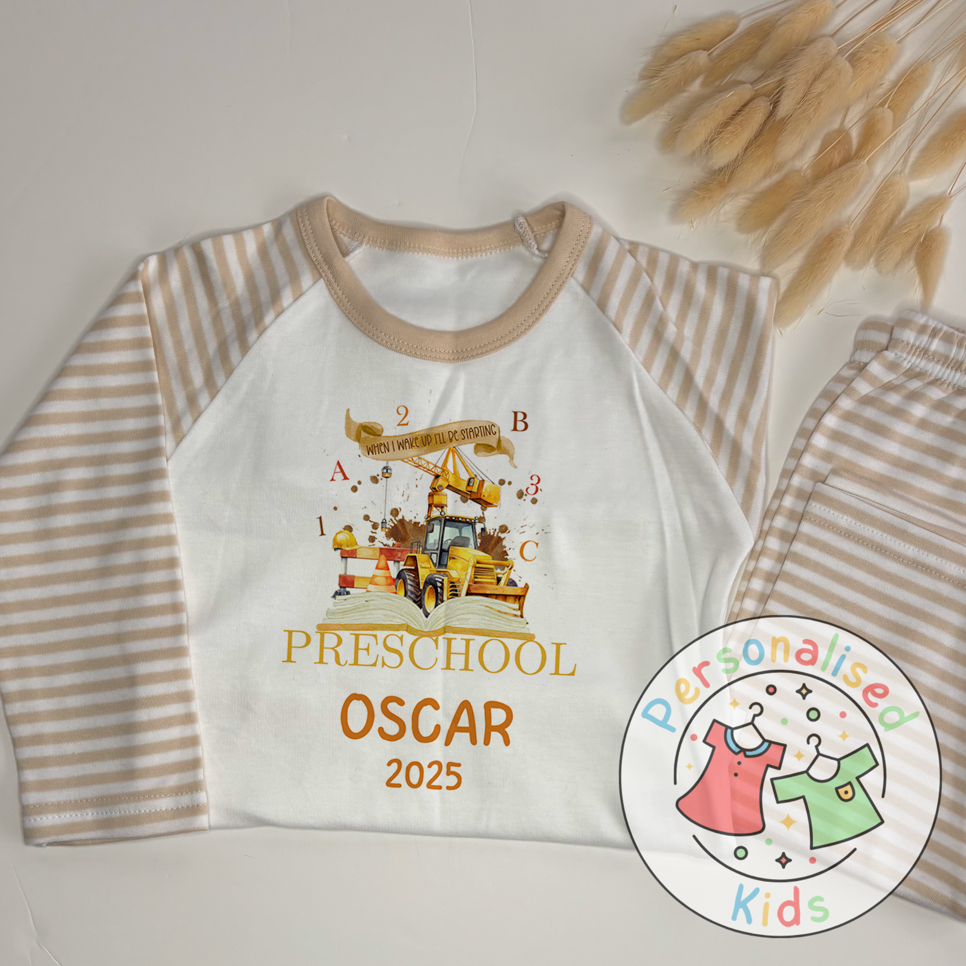 Celebrate their milestone in comfort and style with these special pyjamas – perfect for little learners getting ready to dig into their next chapter! 🚸🚜✏️