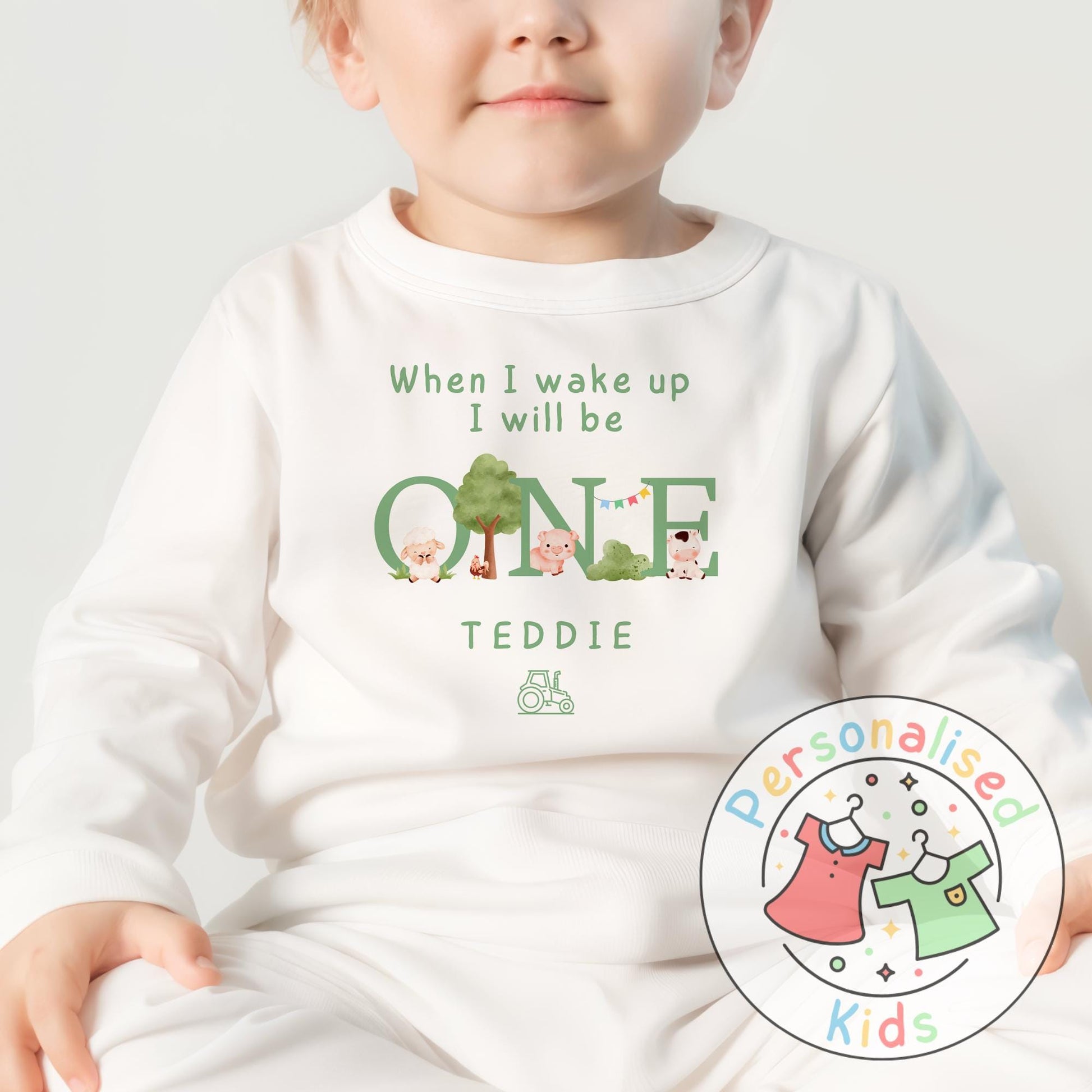 Celebrate your little one's special day with our adorable farm animal birthday pyjamas! Featuring a sweet green design full of cute farmyard friends, these pyjamas are personalized with your child’s name and age, making birthday mornings even more magical.