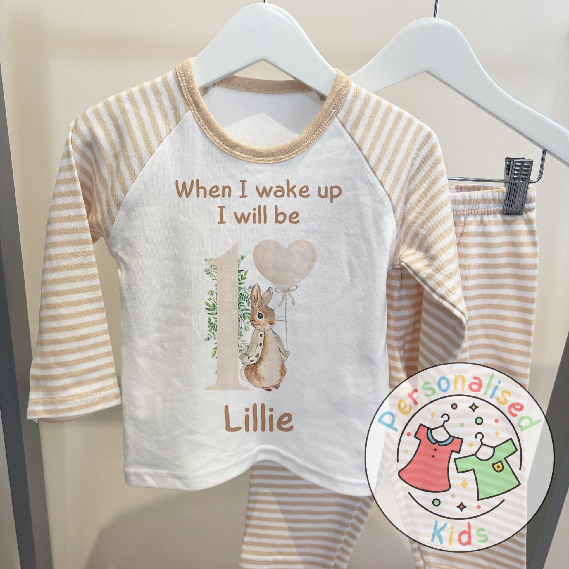 π° Personalised "When I Wake Up, I Will Be" Neutral Floppy Rabbit Birthday Pyjamas β Custom Age & Name π