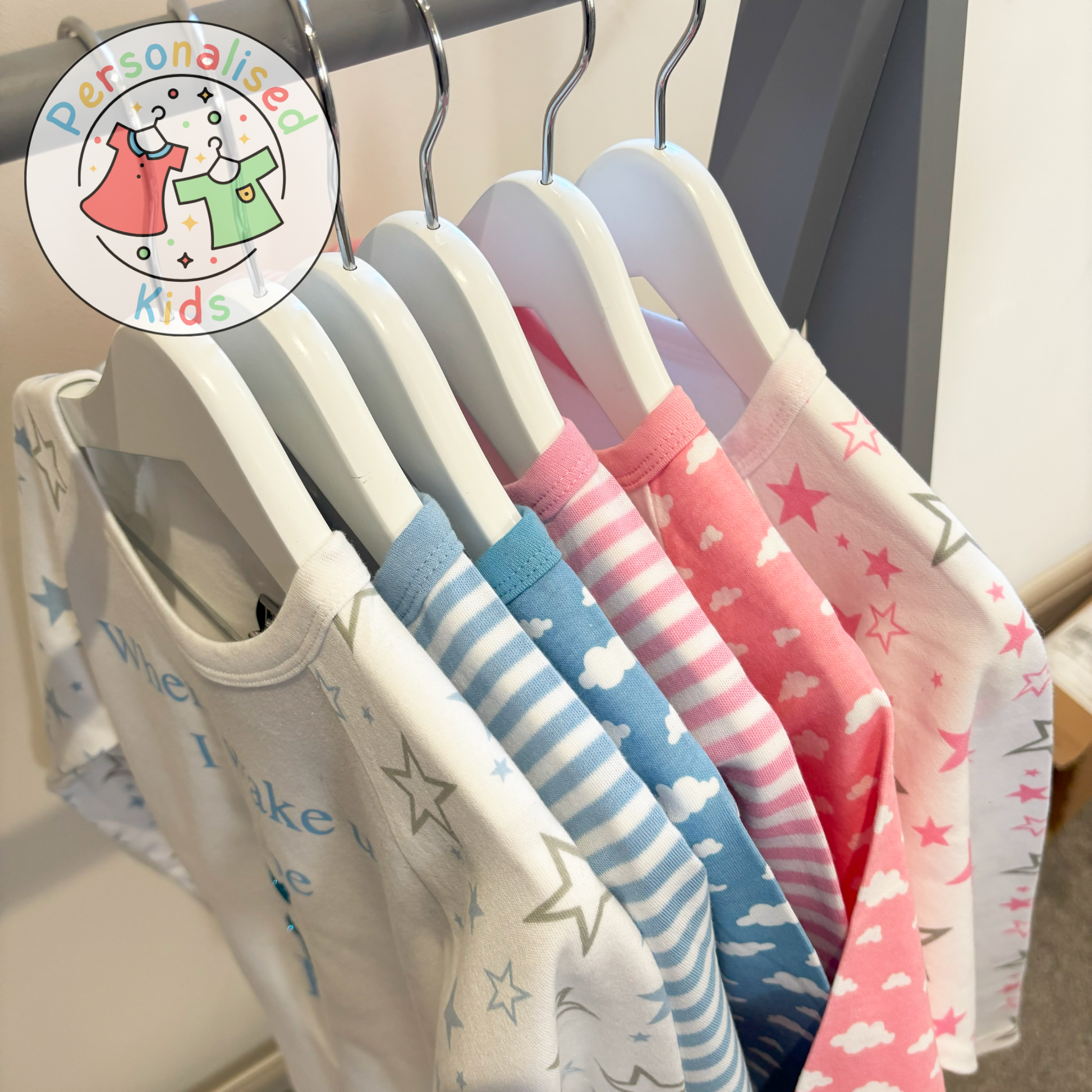 Make your child’s birthday morning truly magical with our fairy tale castle birthday pyjamas, featuring the sweet phrase “When I wake up I will be…” alongside a pretty blue castle design. These enchanting pyjamas are personalised with your child’s name, making them the perfect mix of comfort, style, and celebration.