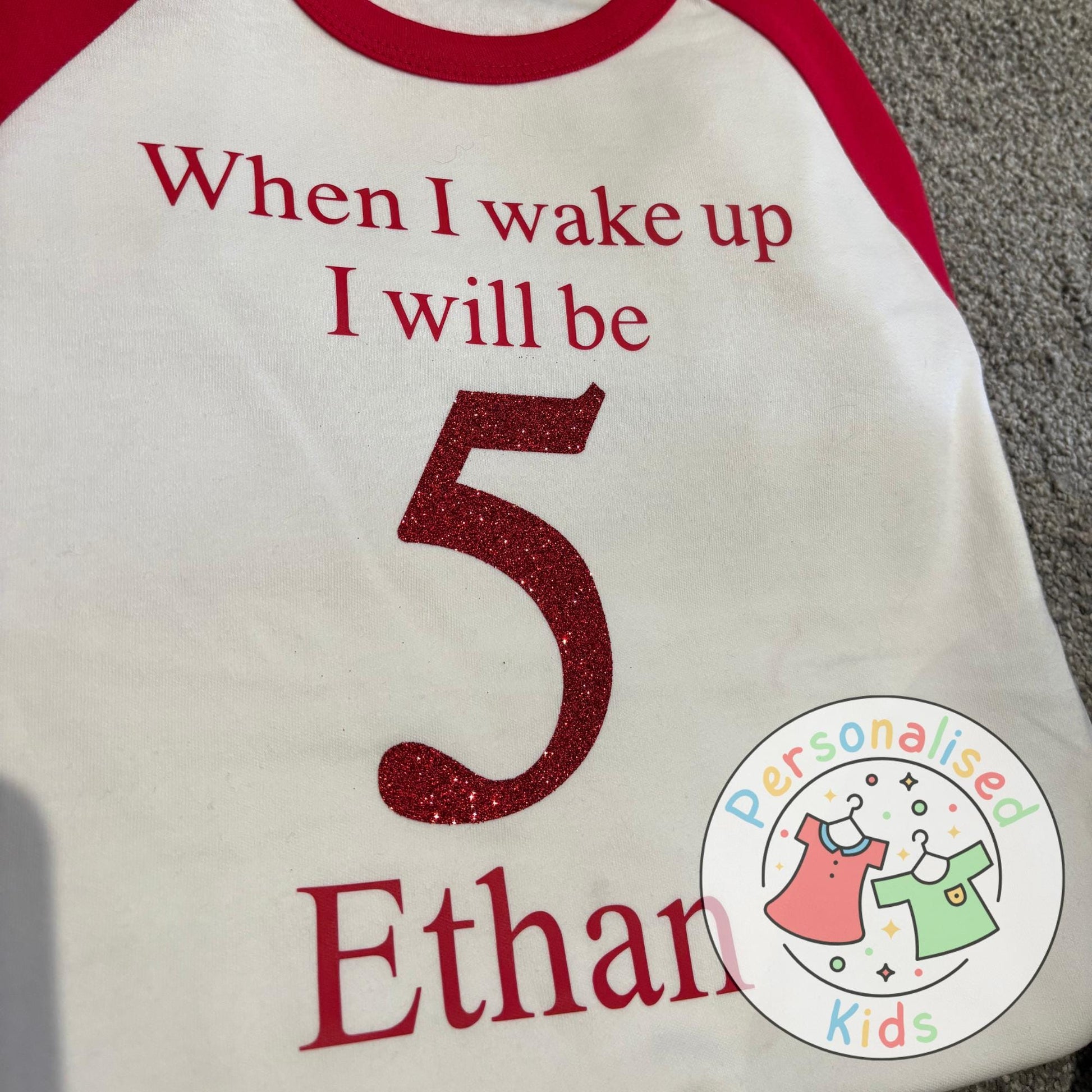 Personalised Glitter Birthday Pyjamas – “When I Wake Up, I Will Be” Sparkly Design